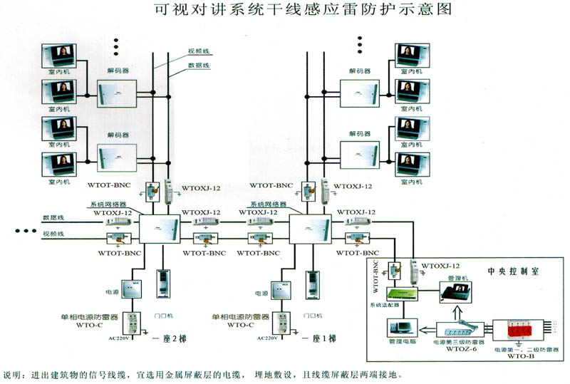 可視對講系統(tǒng)干線感應雷防護示意圖