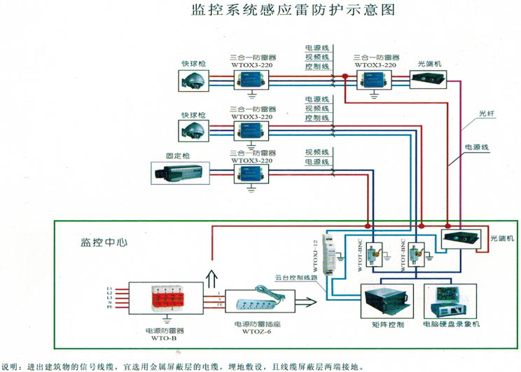 監(jiān)控系統(tǒng)感應(yīng)雷防護(hù)示意圖