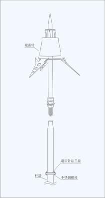 5、將避雷針各部件組裝好后,用螺栓緊固或焊接方法將避雷針整體固定在基座上。