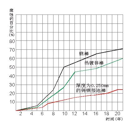 電鍍銅接地材料表層為純度99.9%電解銅,其銅層與鋼層的結(jié)合是分子的結(jié)合,克服了自身的電化學(xué)腐蝕,因而埋在土壤中有很強(qiáng)的耐腐蝕性能,結(jié)合國際范例其使用壽命在30年以上。